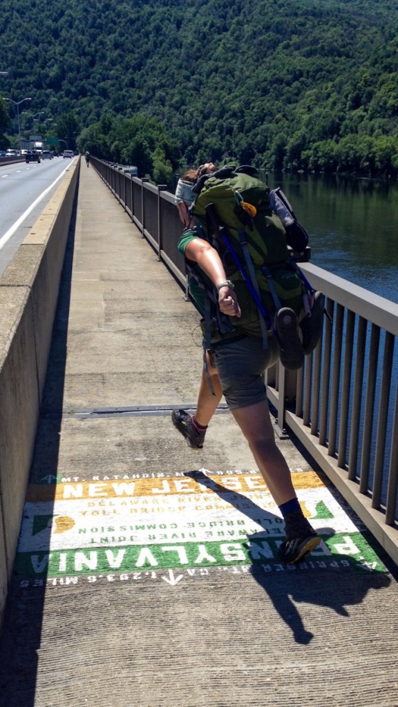 The rest of Pennsylvania was a mess of loose stones and rock climbing that abruptly stopped a few miles south of the New Jersey border. From there, it was smooth sailing on soft dirt and pine needles before we crossed the Delaware River Bridge and entered our 8th state.